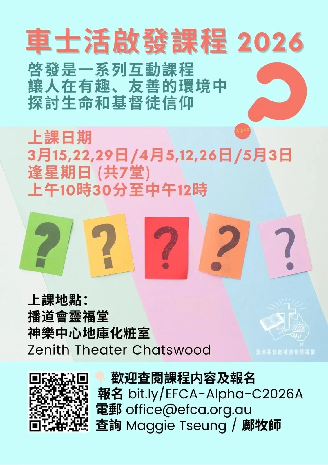 查詢以上課程:Maggie Tseung 或鄺牧師