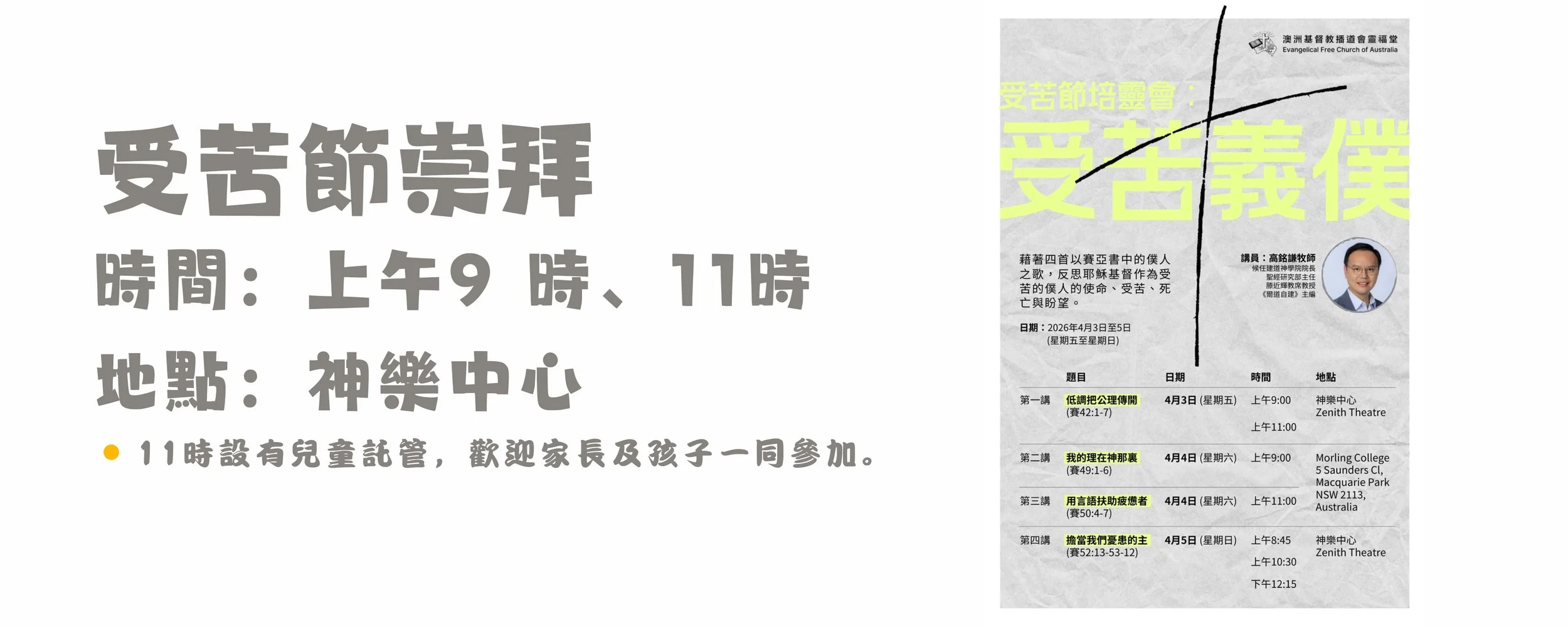 時間:8:45am, 10:30am & 12:15pm